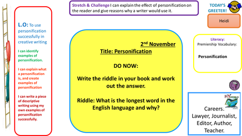 Ks3 Lesson On Personification Using Imagery To Help Create A Piece Of Descriptive Writing Teaching Resources